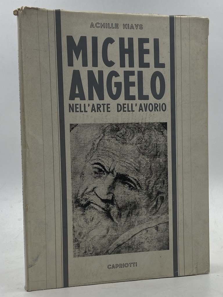 Cartonato editoriale con sovraccoperta, cm17x24, pp 64 (2) + XXII tavole patinate e antiporta con complessive 41 illustrazioni in nero. Prefazione di Mario Rivosecchi. L’autore esamina alcuni crocifissi eburnei attribuiti a Michelangelo, confrontandoli con opere coeve e successive.