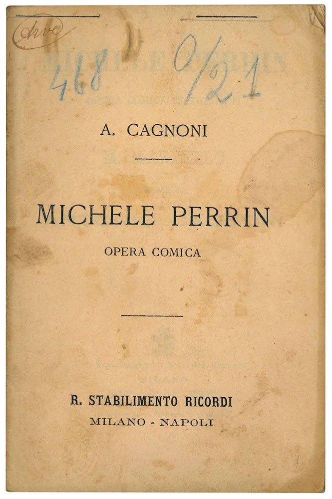 Michele Perrin opera comica in tre atti. Parole di M. Marcello. Musica di Antonio Cagnoni.