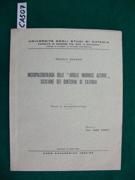 Micropaleontologia delle - argielle marnose azzurre - siciliane dei dintorni di Catania - (Tesi di Laurea)