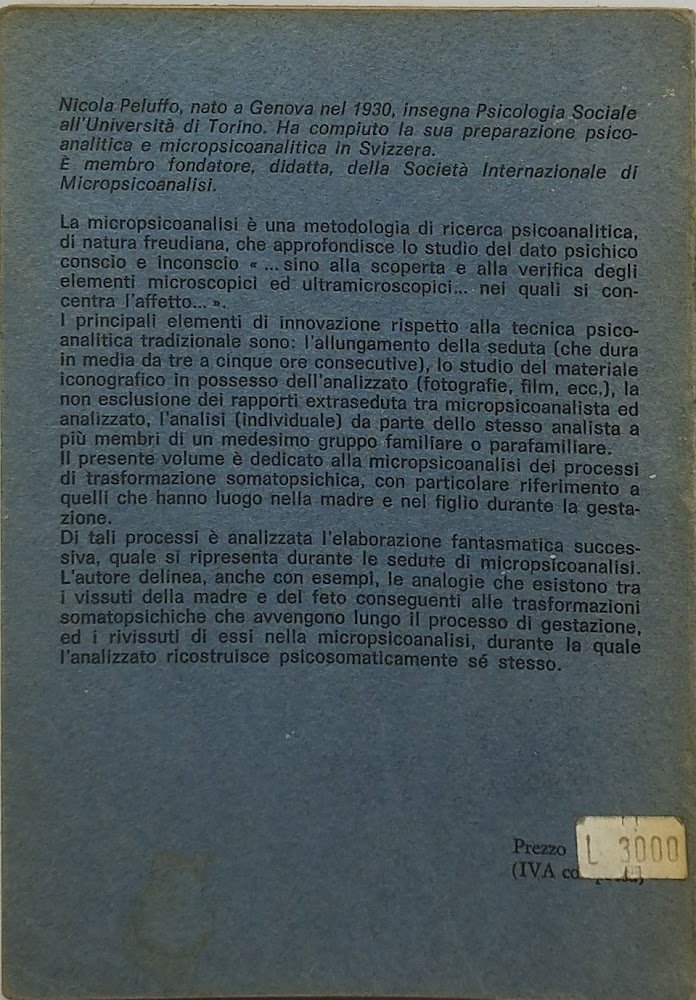 nicola peluffo micropsicoanalisi dei processi di trasformazione. , book's store 1977 italiano, 141 °