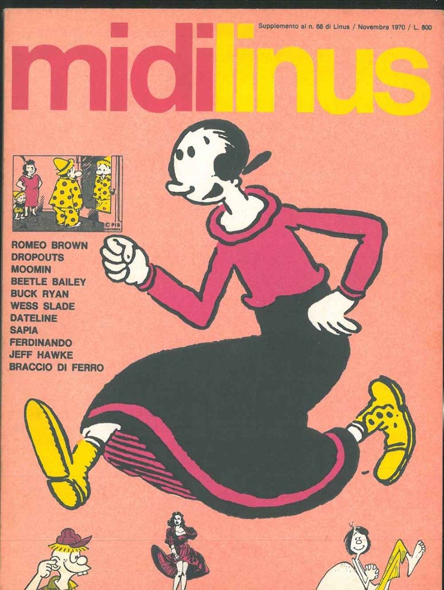 Midilinus. Supplemento al n. 68 di Linus/novembre 1970. Romeo Brown, Dropouts, Moomin, Beetle Bailey, Buck Ryan, Wess Slade, Dateline, Sapia, Ferdinando, Jef Hawke, Braccio di Ferro
