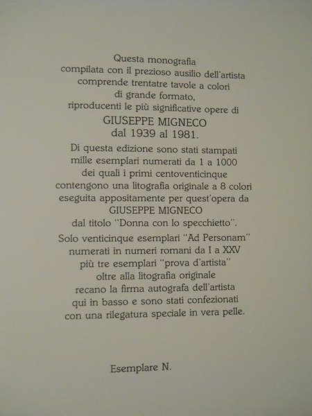 Ediz. a tiratura numerata. Importanti i saggi e i contributi di vari autori sull'opera del bravo artista siciliano.