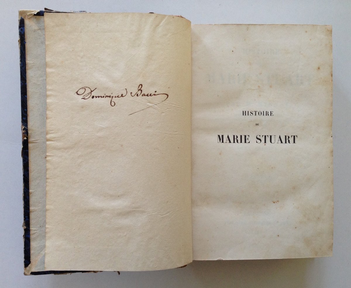 MIGNET M., HISTOIRE DE MARIE STUART LAUSANNE, SCHNEIDER, 1852, in 8°, 2 tomi rileg. in un vol., pp. 355 - 340, rileg. m. pelle coeva con bei fregi e titoli oro al dorso, piatti marmor., nome di proprietà alla prima bianca. Condizioni di conservazione Esemplare in buono stato con leggere tracce d'uso, leggere abrasioni ai piatti e al dorso, graffio alla coperta anteriore. MM0425/B2-353