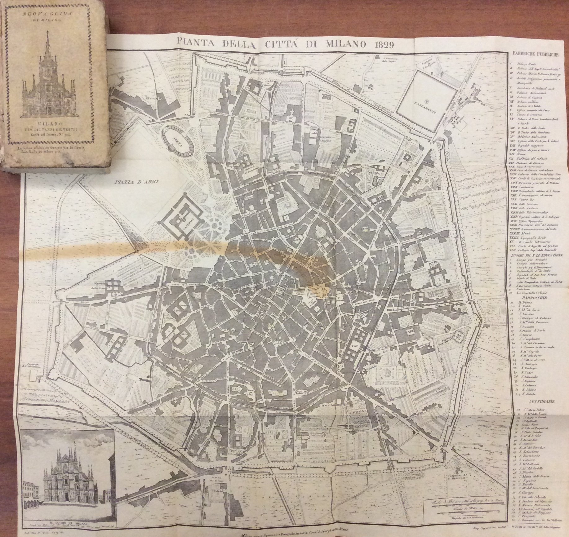 In-16 p. (mm. 155x95), cartonato editoriale (abrasioni e manc. al dorso), pp. VIII,519, con lAlmanacco del 1828 più volte ripiegato fuori testo e la pianta di Milano del 1829 in facsimile. Cfr. Villa "Bibl. delle Guide di Milano",159: "E' una delle piu' importanti guide. La prima ediz., stampata nel 1822, fu venduta senza interruzione sino al 1830; l'editore provvedeva soltanto a far stampare sul frontesp. l'anno in cui veniva venduta, cosi' il foresiero che l'acquistava era convinto che fosse aggiornata fino a quel momento. Sono reperibili esempl. con l'aggiunta dell'Almanacco per l'anno in corso fino al 1830, quando venne pubblicata la seconda ediz. con variazioni". Testo ben conservato.