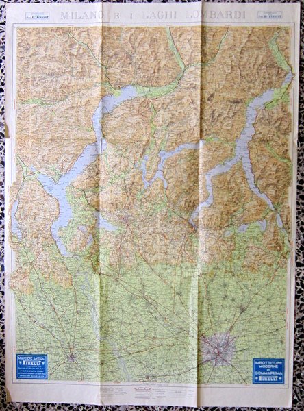 Milano e i laghi lombardi. Carta topografica al 1:100.000. Omaggio gratuito della società italiana Pirelli.