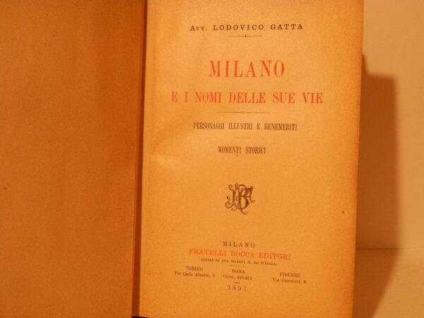 16°, 19 cm, pp. 579, Stemma del comune di Milano all'inizio del testo e alcuni stemmi fuori testo, rilegatura coeva in tela, titolo in oro al dorso, esemplare molto buono. Biografie dei personaggi divisi per mestieri o benemerenze, e breve racconto dei momenti storici a cui erano dedicate le vie di Milano verso la fine del XIX secolo. *** TUTTI I NOSTRI LIBRI SONO VISIBILI PREVIO CONTATTO MAIL O TELEFONO NELLA NUOVA SEDE DI MILANO: LIBRERIA COSMOPOLIS, VIA JOMMELLI, 22. ***