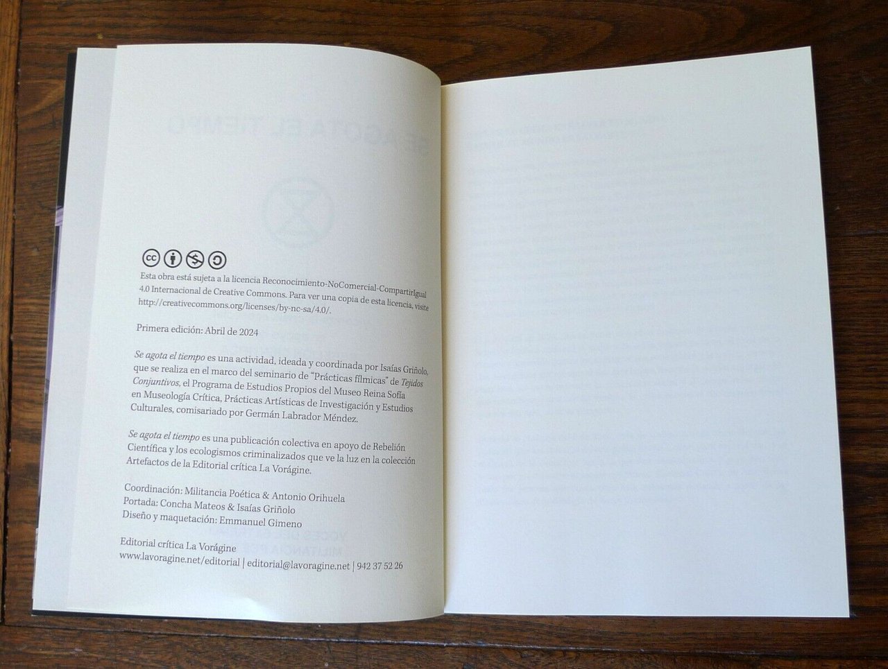 AA.VV. (Voces del Extremo / Militancia Poética 2024),SE AGOTA EL TIEMPO.REBELIÓN POÉTICA POR EL CLIMAY CONTRA LA CRISIS ECOSOCIALEN APOYO DE REBELIÓN CIENTÍFICAY LOC ECOLOGISMOS CRIMINALIZADOS.Editorial Critica La Vorágine, 2024,brossura, 21,5x15,5 cm., pp.128,testo in spagnolo,peso: g.300