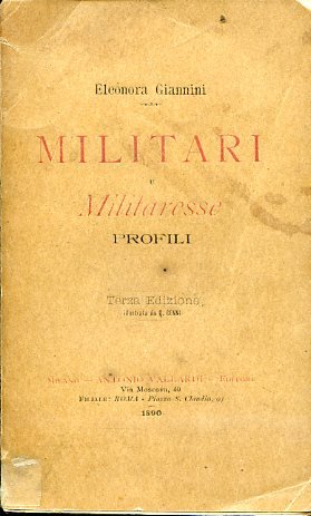 In-16°, pp. 91, (5), brossura editoriale. Numerose vignette in b.n. n.t. di Quinto Cenni. Piccoli restauri e gorette alla brossura. Bell'esemplare. Terza edizione. La Giannini, che esprime il suo rimpianto per non essere nata uomo e non aver potuto intraprendere la carriera militare, scrisse anche altri volumi dedicati all'esercito, alla sua vita e alla sua disciplina. Il Cenni (Imola, 1845-Carnate, 1917) fu il maggior pittore italiano di bozzetti militari a cavallo tra Ottocento e Novecento, nonché fondatore e direttore de 'L'Illustrazione Italiana' nel decennio 1887-1897. Manca allo Sticca.