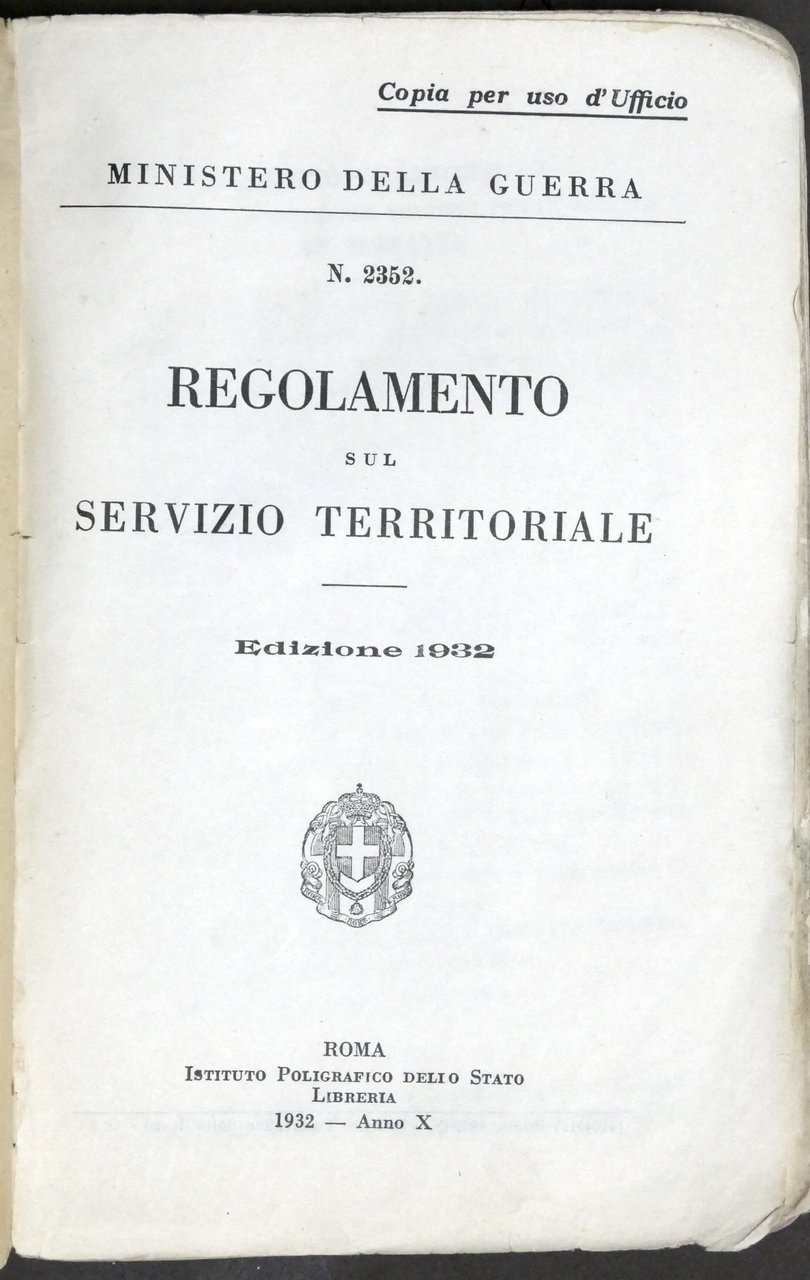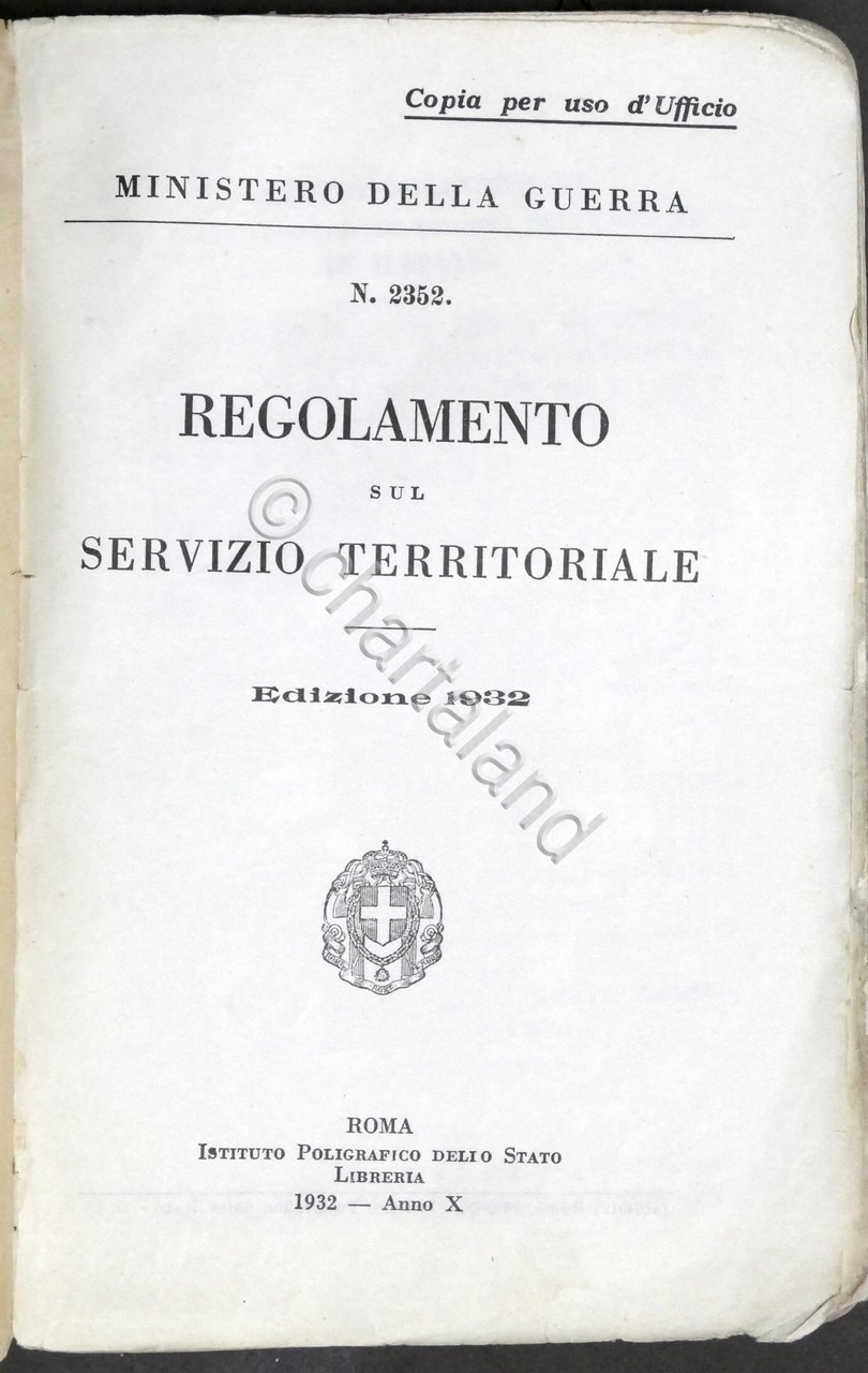 Militaria - Regolamento del Servizio Territoriale - ed. 1932