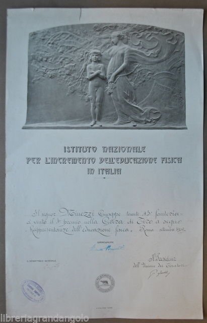 Militaria Armi Certificato Premio Tiro SegnoIstituto Educazione Fisica Roma 1909