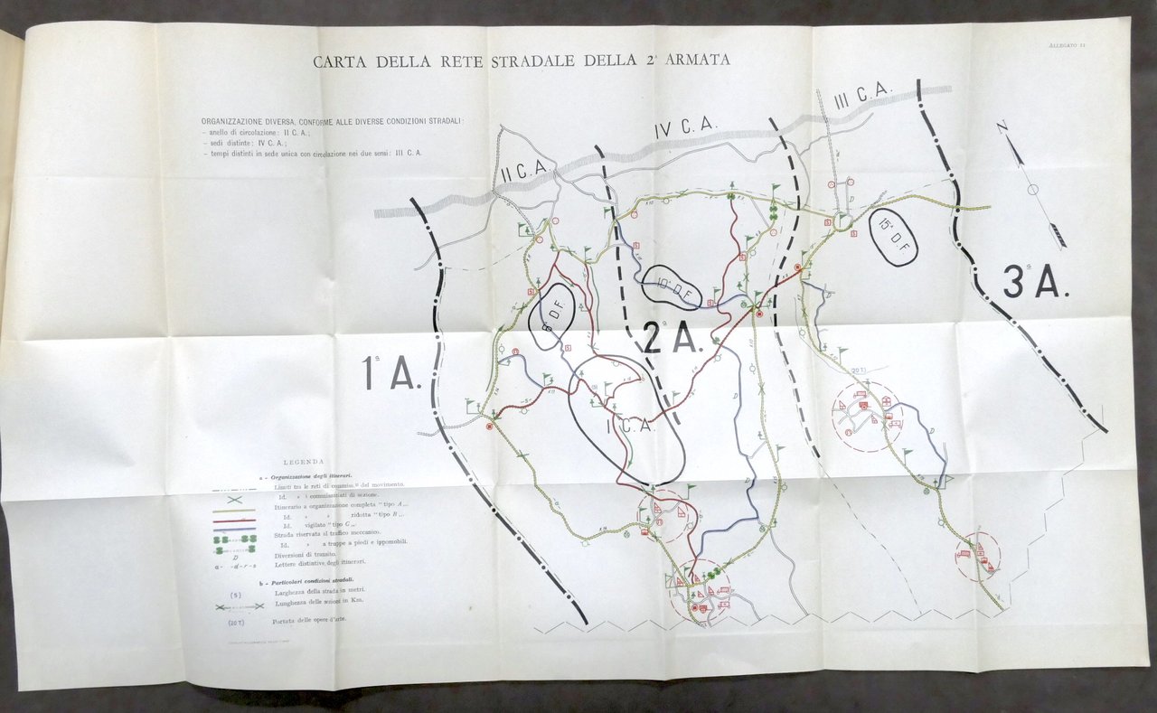 Militaria - Ministero della Guerra Organizzazione Stradale e Disciplina del Movimento in Guerra - ed. 1939 Pag. 114, con 18 allegati f.t. più volte ripiegati. Copertina morbida - Testo in italiano. Condizioni molto buone.