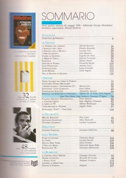 - ZZX MILLELIBRI SALONE TORINO BONASSO PASOLINI SPADOLINI GASSMAN, DIAVOLI PANZINI GOETHE Giornali, Periodici e Riviste