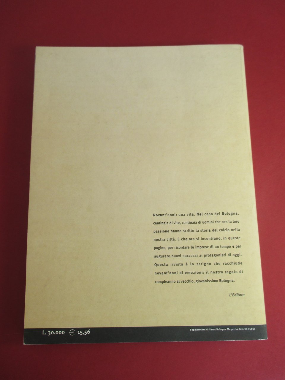 In – 8vo grande ( misure cm 28x21 ), copertina flessibile, pp. 303 ( 1 ). Prefazione di Enzo Biagi. Completamente illustrato con foto in nero e a colori. Supplemento al n. 3 anno 6 di " Forza Bologna ". Scritti di Gianfranco Civolani, Oddone Nordio, Ivan Zazzaroni, Italo Cucci, Gabriele Canè, Luca Goldoni e altri.
