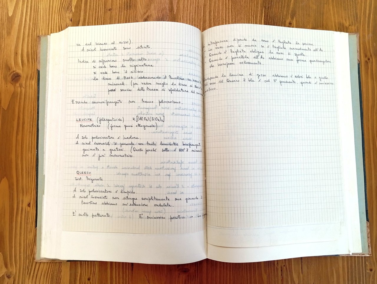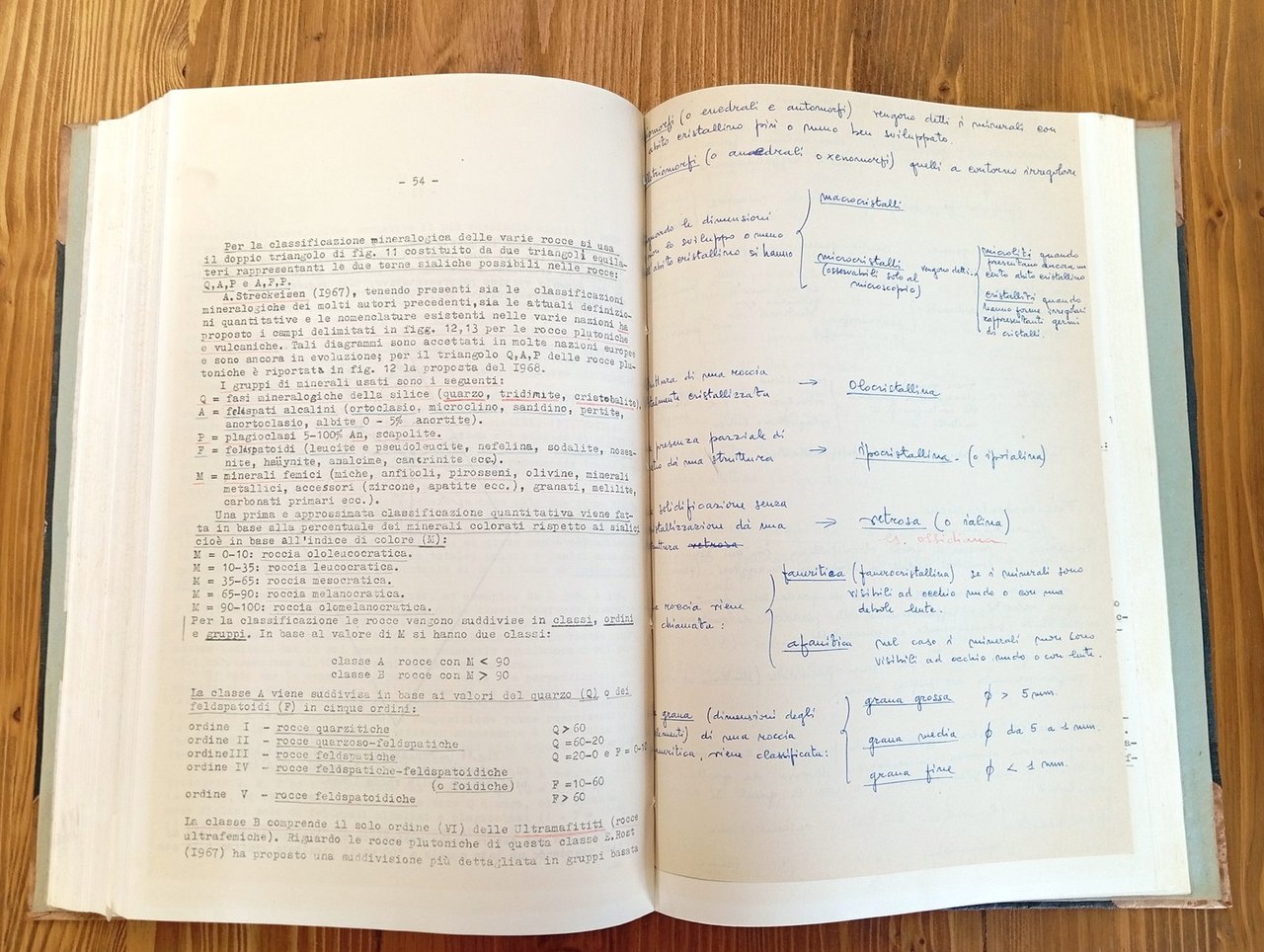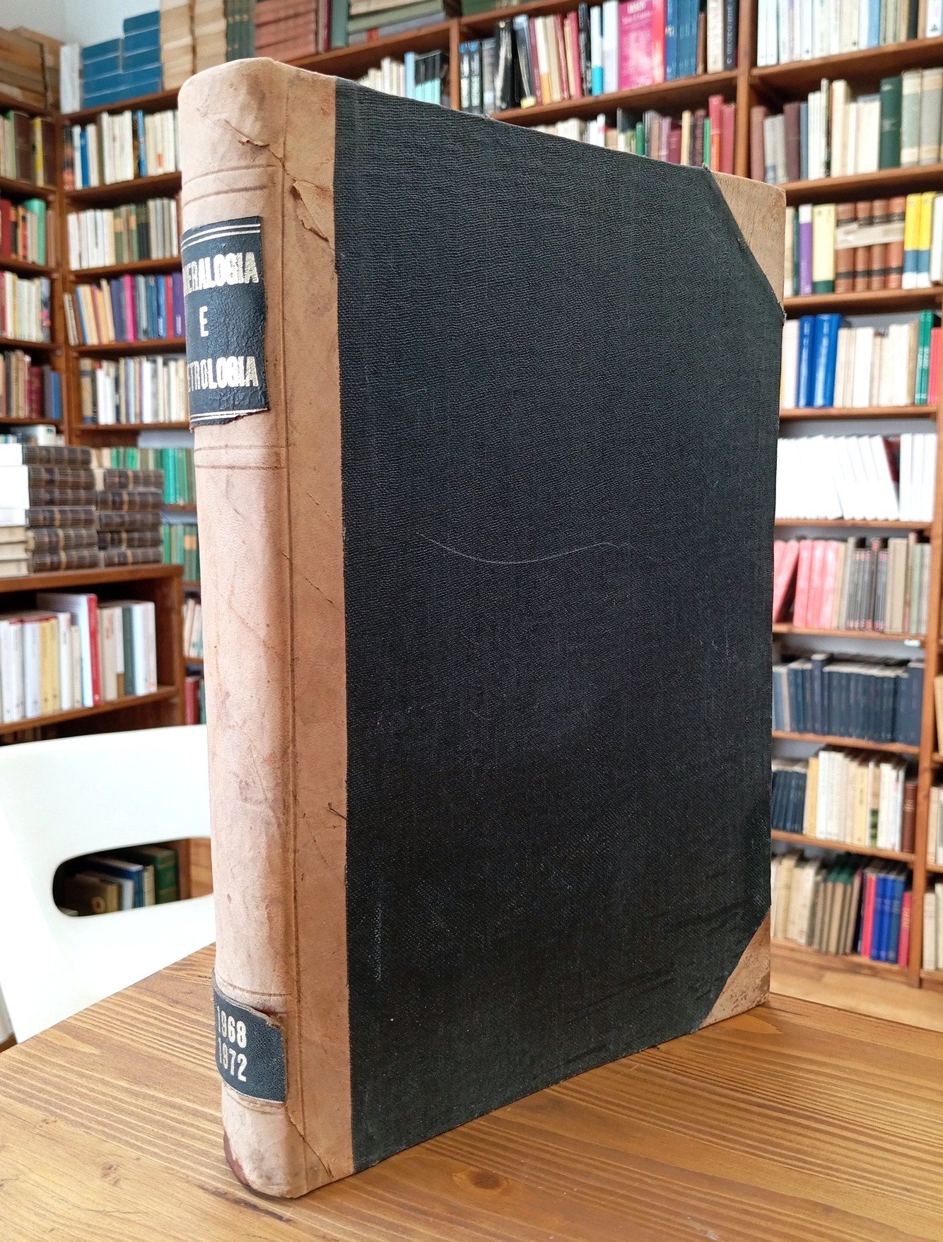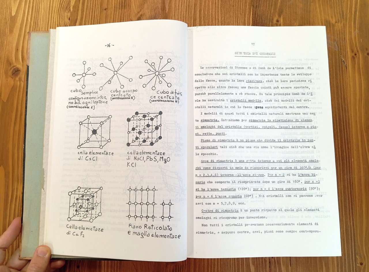 "Università di Napoli - Istituto di Mineralogia" - Volume unico in grande formato (22 x 32 cm circa) nel quale sono riuniti gli appunti delle lezioni tenute dal Prof. Antonio Scherillo (Mineralogia) e dal Prof. Pio Di Girolamo (Petrografia) dell'Università di Napoli negli anni 1968/72; 275 + 178 pagine con aggiunta di numerosi inserti manoscritti dello studente; figure in nero nel testo. Copertina rigida con dorso e angoli in pelle, titoli su tasselli in pelle applicati al dorso. Materiale da studio con diffuse sottolineature in nero e a pastello colorato; volume integro e ben conservato.