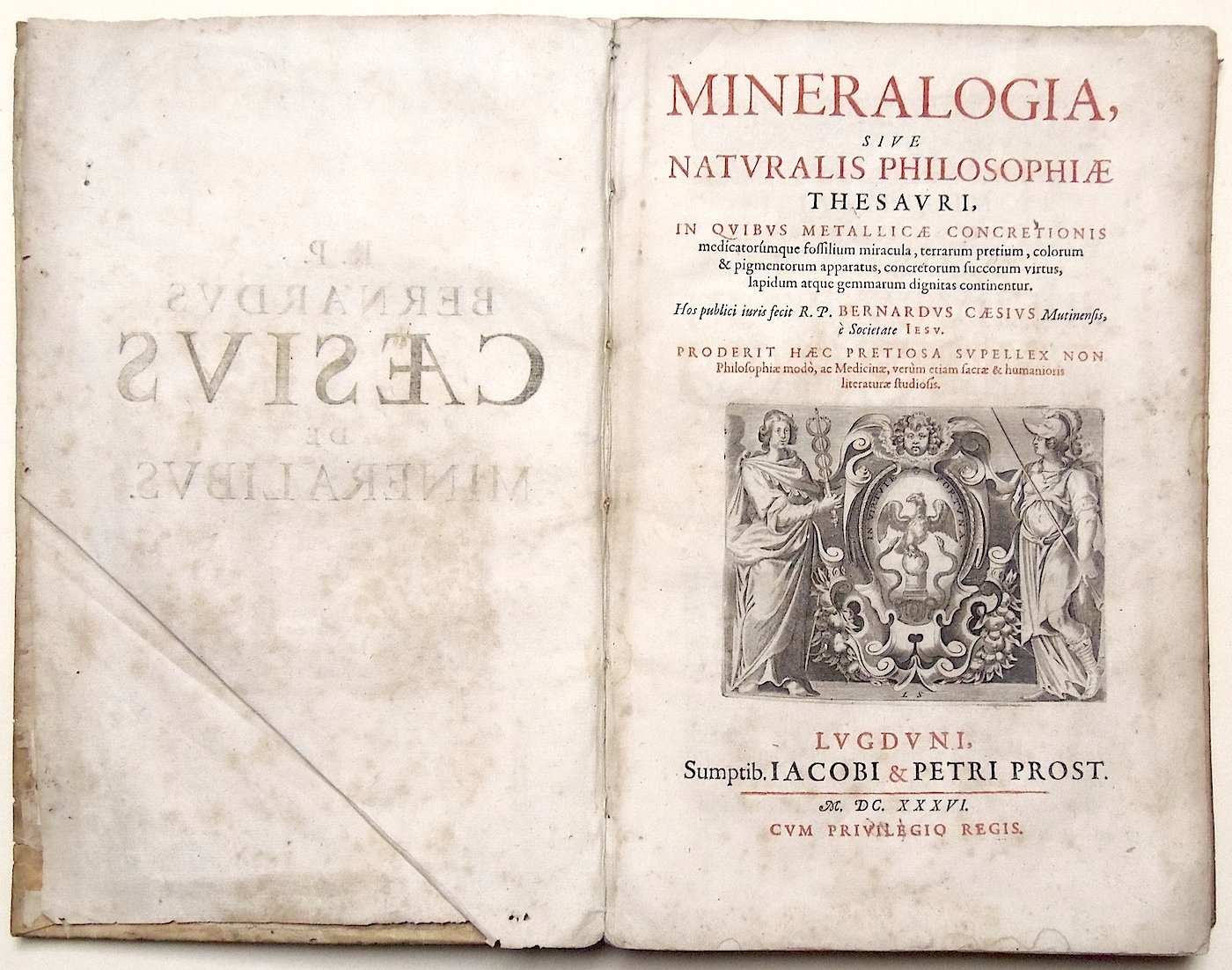 In folio (mm365x235); Pagg. (16), 626, (69), una bianca. Grande vignetta allegorica incisa al frontespizio, titolo in rosso e nero, testo su due colonne; note a stampa al margine. Legatura in piena pergamena semifloscia, titolo manoscritto al dorso, tracce di due bindelle.<BR>Prima edizione, seconda tiratura con dedica epistolaria a Charles de Neufville. <BR>Rara opera, compendio di autori e argomenti sulla mineralogia; diviso in cinque sezioni: la prima tratta delle facoltà della Mineralogia (ritenendo che sia una filosofia pura), la seconda delle proprietà dei materiali, degli aspetti economici e commerciali, di colori e pigmenti; il terzo dei principi interni dei minerali dei succhi della terra che congelano in minerali, la quarta e la quinta di gemme e metalli. Conclude l'opera un completo indice.<BR>Secondo Partington il termine "mineralogia" ha qui, un uso moderno della parola, i significati sono però intimamente filosofici e appartengono in maniera trasversale a molte discipline, dalla religione, (in quanto il Cesi affermava che lo studio della mineralogia aiutava a capire la Bibbia, argomento ardito) a medicina, pittura, agricoltura, alchimia. Ad esempio, nel descrivere la generazione dei minerali, segue da vicino Aristotele, ma cita anche Teofrasto, Avicenna, Alberto Magno, Agricola, Gregorius Reisch, Plinio, Boodt, Francis Rueus, Marbodio, la Bibbia, e numerosi Padri della Chiesa. <BR>Continuando nella sua dissertazione, l'autore ritiene che il Sole, la Luna e le stelle influenzino il mondo sotterraneo dei minerali e dei metalli, e che le gemme abbiano miracolosi poteri curativi. E' compreso un capitolo sul magnete. L'opera venne pubblicata postuma su direttive lasciate dall'autore all'ordine dei suoi confratelli, i gesuiti di Lione. Cesi (1581-1630), was a Jesuit professor at Modena and Parma.<BR>Buon esemplare con arrossamento uniforme della carta e fioriture. Pergamena con piccole mende a spigoli e cerniere, piccola spellatura alla cuffia inf.<BR>Sinkankas 1221:" Large compilation of mineralogical knowledge, with much on paleontological specimen as then known, and also on gemstones.Apparently he is the first author to employ the term "mineralogy"… The text in five books, treats mineralogy in general, the earths, petrified juices (salts, organics), stones and germs, and metals".<BR>Hoover 214. Partington, II, p. 94. Schuh 1113. Thorndike, VII, pp. 254-57; Ward & Carozzi, 457. <BR><BR>