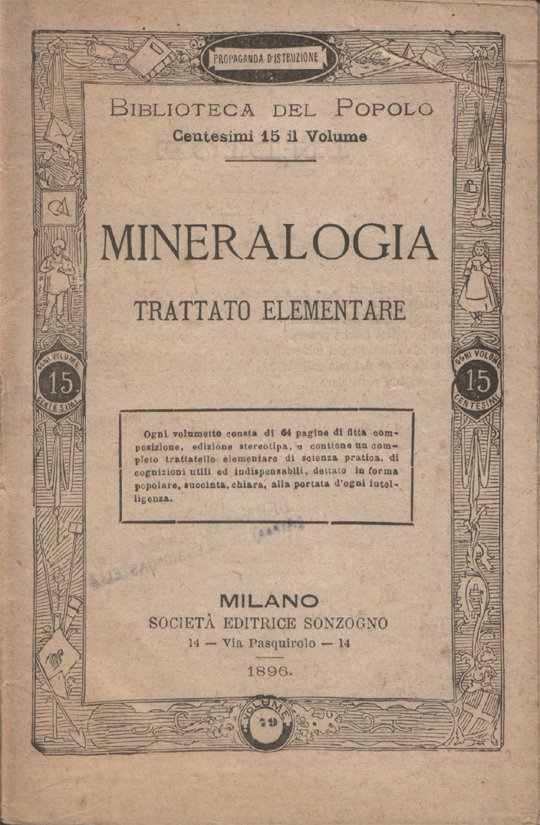In-16°, pp. 63, (1), copertina editoriale. Timbro di appartenenza a pagina 2, di vecchio proprietario di Oleggio Castello. Firma d'appartenenza a pagina 3. Normale patina del tempo alle pagine, per il resto in buono stato. Volume 79 nella collezione "Biblioteca del Popolo". Indice: Nozioni preliminari; Proprietà fisiche dei minerali; Proprietà ottiche dei minerali; Altre proprietà fisiche generali; Proprietà chimiche dei minerali; Classificazione dei minerali; I minerali in particolare.