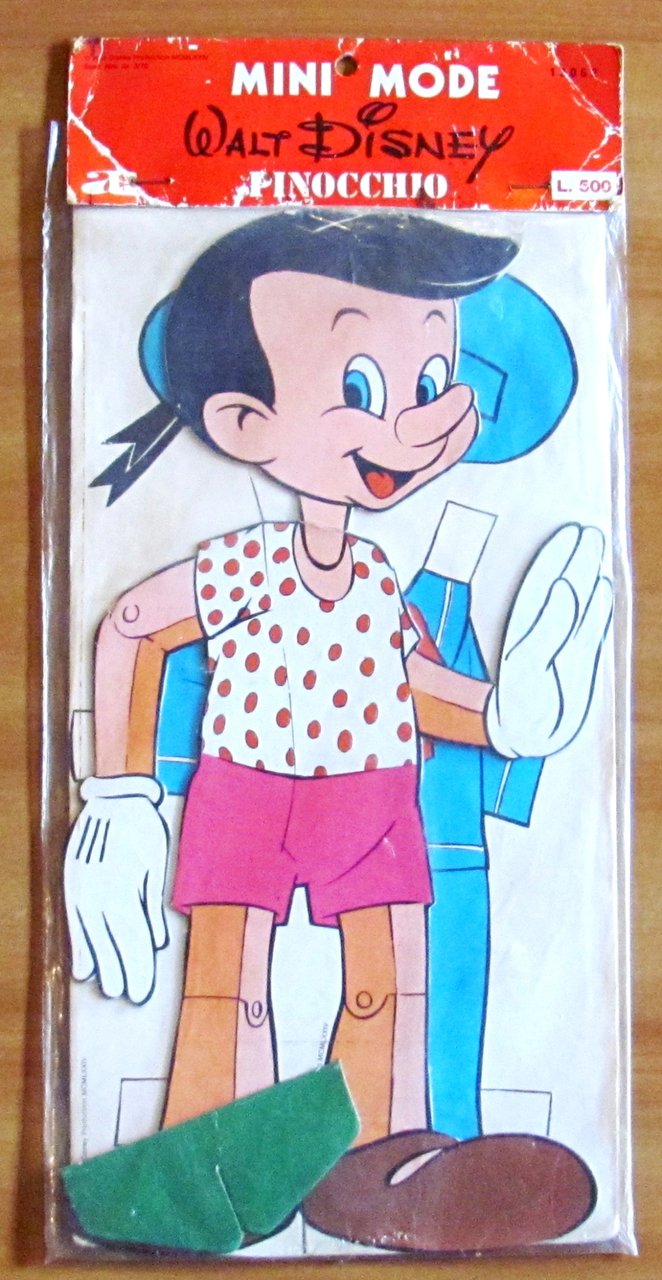 Walt Disney Mini Mode. Marionetta di Pinocchio inserita in custodia originale con diversi cambi di vestiti. Ed. Auguri di Mondadori - Verona, Marzo 1979. 18x38,5. Blisterato. Ottimo stato. , Ottimo (Fine)