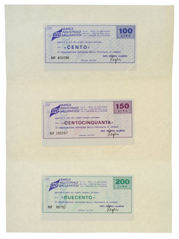 MINIASSEGNI Banca Indusriale Gallaratese. SerIe dei 3 valori emessi - NUOVI