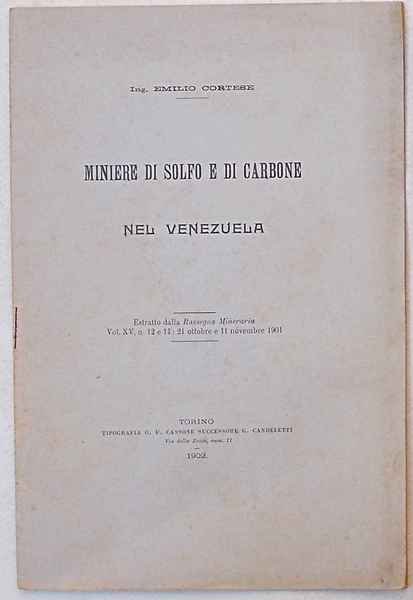 In 8° (cm. 23 x 15,5); pagg. 18; con 1 illustrazioni n.t.; brossura originale. VG-. ** Estratto originale dal Rassegna Mineraria.