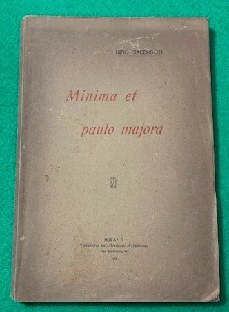 In 4°; 118, (2) pp. e una c. di tav. con ritratto dell'autore. Dedica della famiglia sacerdoti alla prima carta bianca. Brossura editoriale. Esemplare in buone condizioni di conservazione. Prima edizione di questa raccolta di poesie del noto ingegnere modenese, Nino Sacerdoti (Modena, 1º luglio 1873 Milano, 18 luglio 1954).