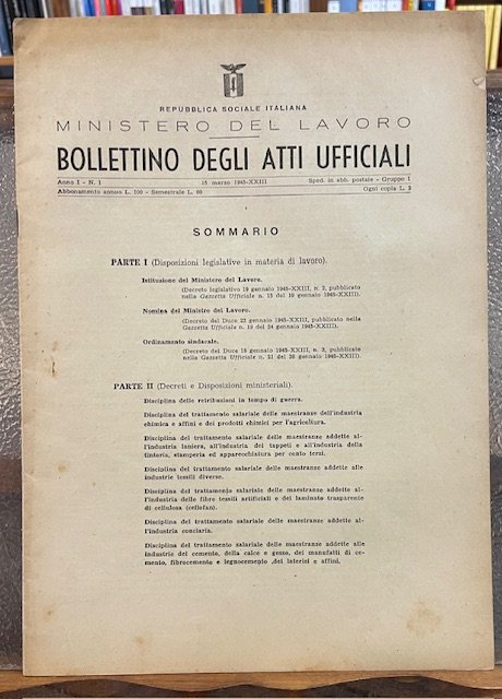 MINISTERO DEL LAVORO. BOLLETTINO DEGLI ATTI UFFICIALI.