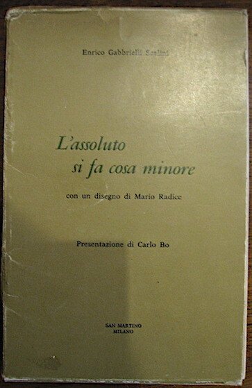 16mo (cm. 19), 91(1) pp., 1 c.nn. con una tavola a colori (segue in altro volume) Idem, L’assoluto si fa cosa minore con un disegno di Mario Radice. Presentazione di Carlo Bo, Ibidem, 58 pp., 3 cc.nn. con una tavola a colori. Brossure editoriali entro custodia. Con biglietto di invio autografo dell’A. Edizione a tiratura limitata e numerata di 400 esemplari (nostri esemplari n. 385). Dorso della custodia con pieghe, altrimenti eccellente stato di conservazione.