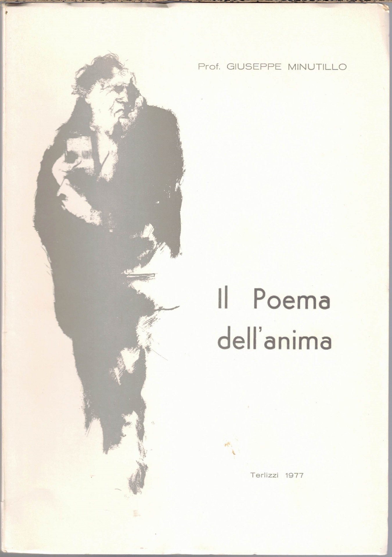 Giuseppe Minutillo, Il poema dell’anima, a cura degli amici nel primo anniversario della morte, maggio 1976-1977, s.n., s.l. (ma stampato a Corato, presso le Grafiche Graziani) s.d. (ma 1977?), pp. 97, cm 24, br. ed. Opera postuma. Raccolta di poesie di Giuseppe Minutillo (Terlizzi, marzo 1922- maggio 1976). Indice: Prefazione – Chi era il Prof. Minutillo – Pensatore filosofo o poeta? – Il Poeta – Il poema dell’anima – Poesie. Leggere tracce d’uso, minima brunitura della carta, per il resto ottimo.