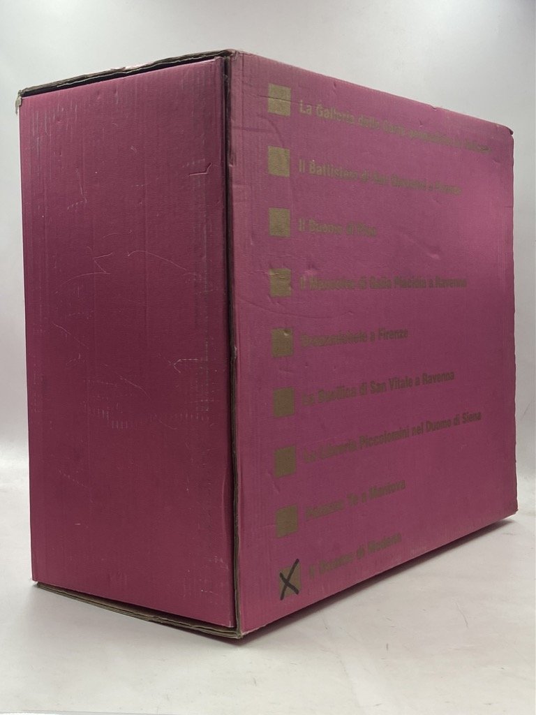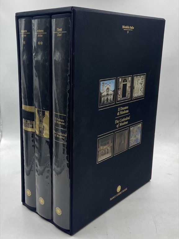Tre volumi in tela editoriale con titoli e fregi dorati, sovraccoperte in acetato, cofanetto rigido in tela con titoli dorati e illustrazioni applicate, il tutto entro custodia protettiva a valigetta e scatola di spedizione originale, cm 31.5 x 25, volume di testo di pp 510 (2) con 203 illustrazioni in nero, due volumi di atlante fotografico a colori di complessive 832 pagine illustrate da oltre 1600 immagini a colori. Buono stato. Novo volume della pregevole collana Mirabilia Italiae diretta da Salvatore Settis, curato da Chiara Frugoni con testi di M. Armandi, R. Bosi, R. Bussi, R. Cattinari, S. Cavicchioli, C. Ciociola, C. Cremonini, M. P. Fantini, N. Forti Grazzini, C. Franzoni, C. Frugoni, A. Galli, A. Garutti, C. Giovannini, S. Lomartire, L. Lorenzini, A. Mazza, A. Milone, R. P. Novello, E. Pagella, A. Peroni, F. Piccinini, F. Rebecchi, L. Rivi, A. Sarchi, G. Trovabene, A. Volpe; Fotografie Ghigo Roli.