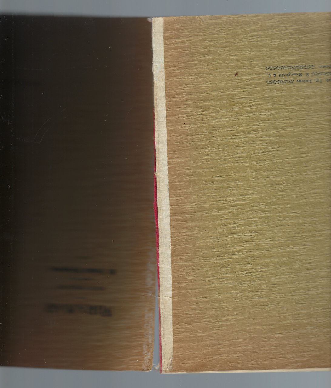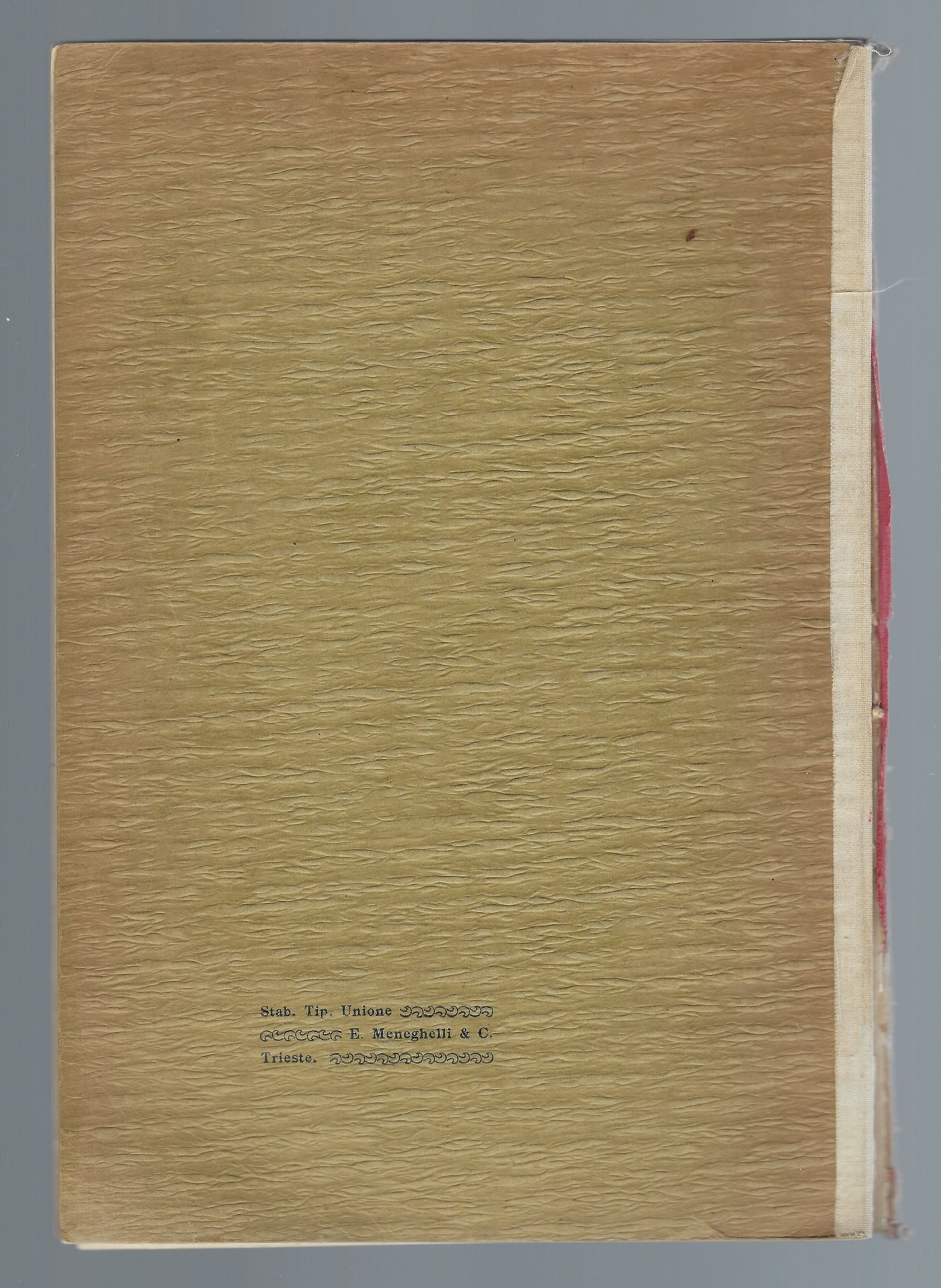 Brossura originale, con tracce d'usura ai due piatti. Dorso mancante, esemplare slegato.