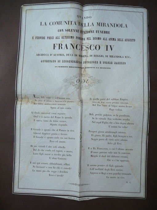 Mirandola Comunit‡ avviso 1846 Morte Duca Francesco IV Estensi Ducato Modena