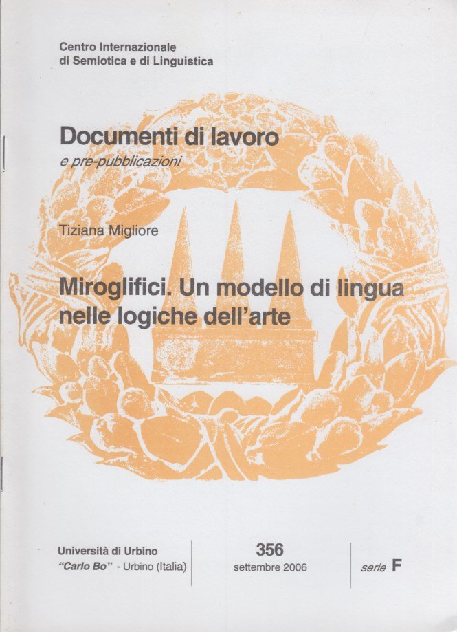 In-8 (Cm 24 x 17), pp. 19, brossura editoriale. Collana Documenti di lavoro e pre-pubblicazioni, 356 Settembre 2006 serie F (Semiotiche visive e audio-visive). OTTIMO