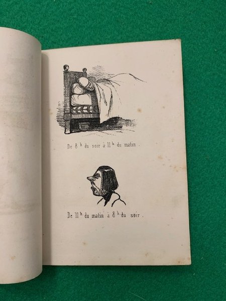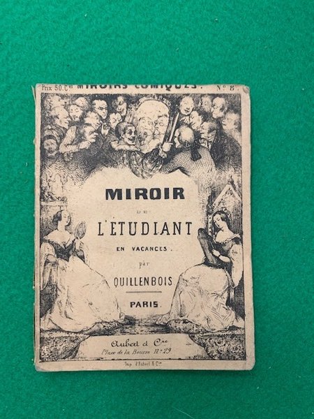 In 12°; 27 cc. Brossura editoriale con il piatto anteriore riccamente illustrato, qualche mancanza di carta al dorso. Prima edizione di questa raccolta di opere satiriche e caricaturali del celebre illustratore, caricaturista, archeologo e pittore francese, Charles-Marie Barone de Sarcus, conosciuto con lo pseudonimo Quillenbois (né à Dijon le 26 mai 1821 et mort à Paris le 28 février 1867). Allievo di Delaroche, espose diverse scene di vita di campagna raccolti durante i ricordi di un viaggio a Roma ai Salons del 1846 e del 1848. Divenne noto soprattutto per le sue caricature, apparse su numerosi giornali e album tra il 1845 e il 1853, e firmate Quillenbois. Questo pseudonimo era dovuto alle stampelle che il giovane artista, storpio, usava per spostarsi. Amico e discepolo di Cham, Quillenbois contribuì in particolare alla rivista satirica "La Revue comique" (1848-1849), fornì disegni d'attualità a La Mode, L'Éclair e L'Illustration, e fu il designatore ufficiale del Caricaturist ( 1849-1851). L'opera qui presentata, facente parte delle Miroir Comiques, ne rappresenta il numero 8. Rarissimo. Very rare.