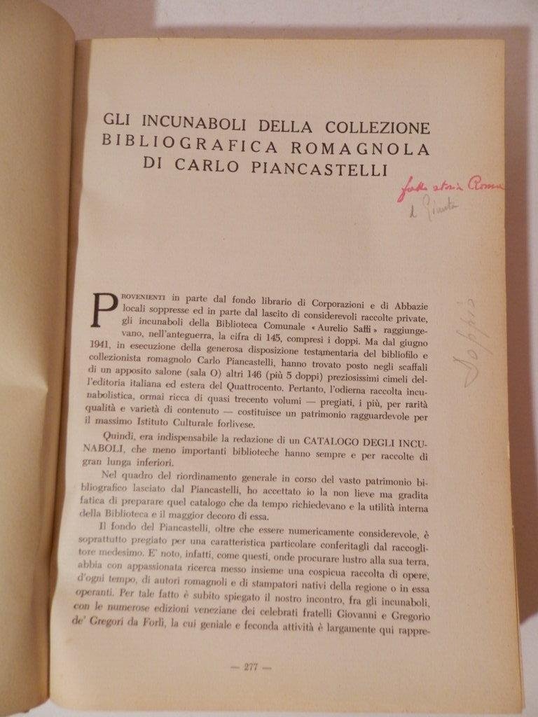 8°, 24 cm, circa 300 pagine, diverse tavole fuori testo, rilegatura non editoriale in tela, titolo in oro al dorso. Esemplare buono. La maggior parte degli articoli tratta di incunaboli e sono presenti anche alcune schede catalografiche di incunaboli celebri. *** TUTTI I NOSTRI LIBRI SONO VISIBILI PREVIO CONTATTO MAIL O TELEFONO NELLA NUOVA SEDE DI MILANO: LIBRERIA COSMOPOLIS, VIA JOMMELLI, 22. ***