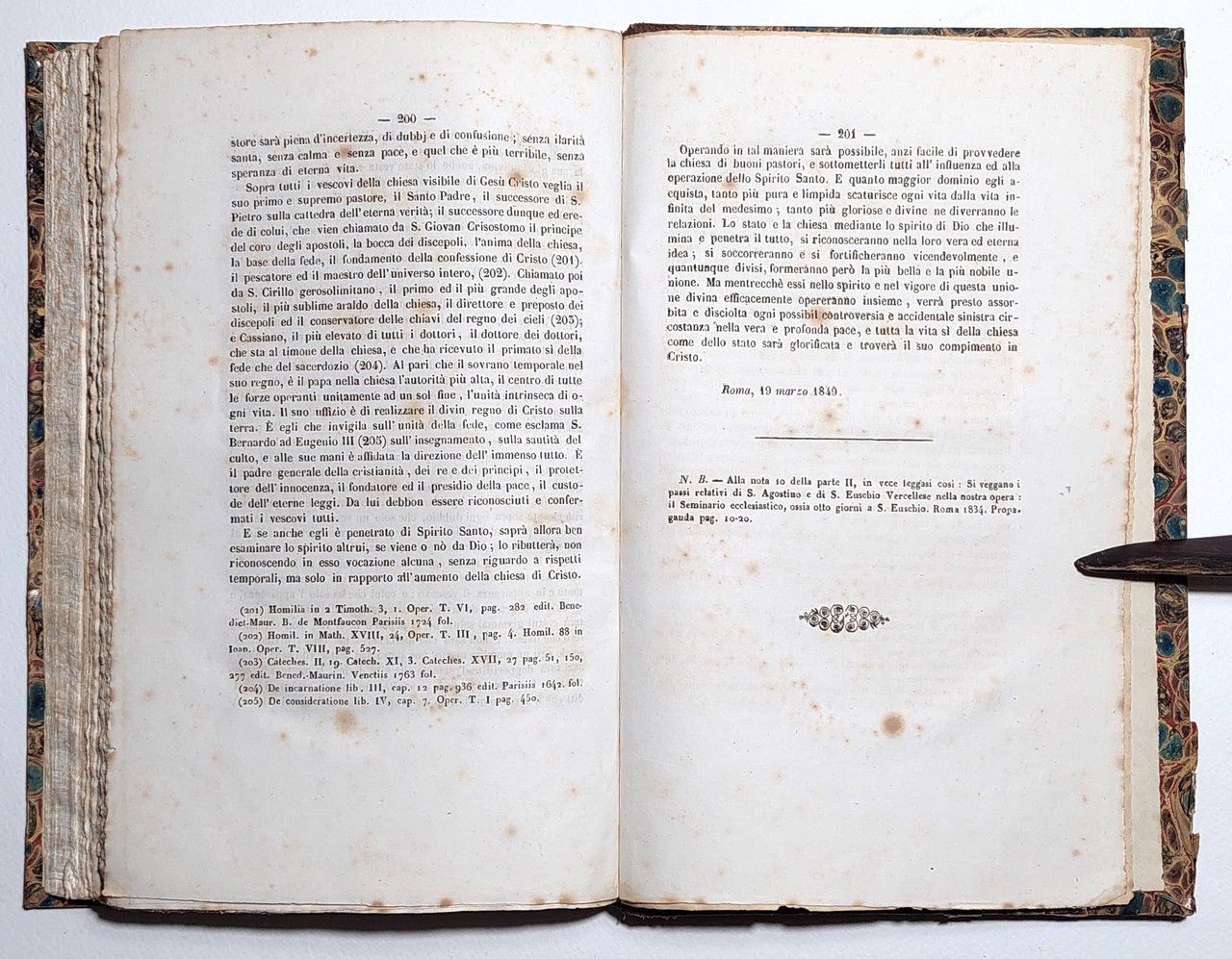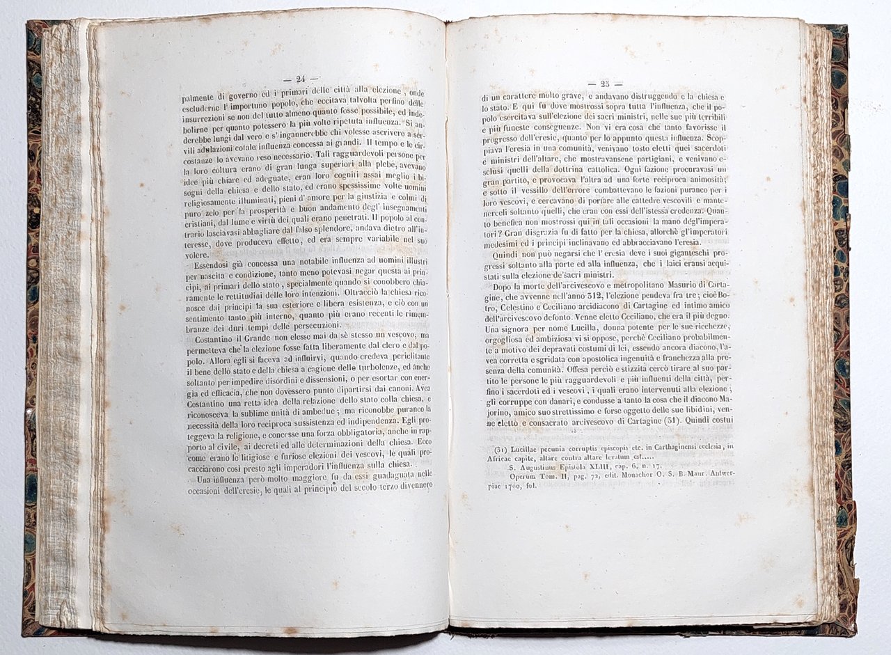 Legatura rigida in mezza pelle con piatti marmorizzati in discreto stato, lievi segni del tempo, alcune lievi rotture alle unghie alla quarta di copertina, dorso in pelle marrone con titolo e fregio in oro, lievi segni di usura e abrasioni ai margini, traccia di etichetta al margine inferiore del dorso, tagli irregolari bruniti con fioriture, sigla di catalogazione a matita alla prima pagina bianca, antiporta e frontespizio, lievi fioriture alle pagine interne che non vanno a disturbare la lettura, numero pagine 134 + 201 dimensioni cm 24 x 15,5