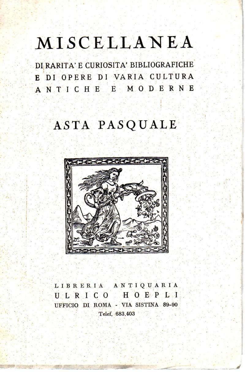 MISCELLANEA DI RARITA'E CURIOSITA' BIBLIOGRAFICHE E DI OPERE DI VARIA CULTURA ANTICHE E MODERNE- Asta Pasquale