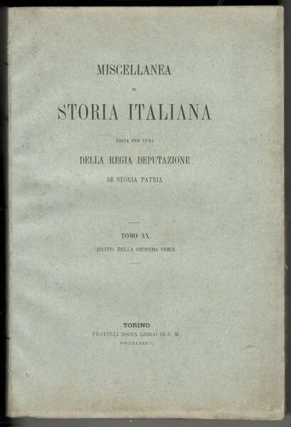 Miscellanea di storia italiana edita per cura della Regia Deputazione di Storia Patria. Tomo XX - Quinto della seconda serie