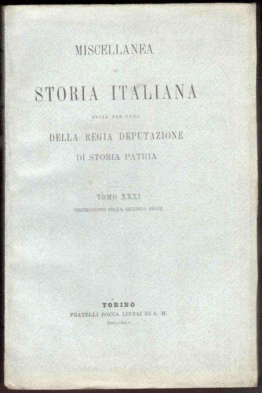 Miscellanea di storia italiana edita per cura della Regia Deputazione di Storia Patria. Tomo XXXI - Decimosesto della seconda serie