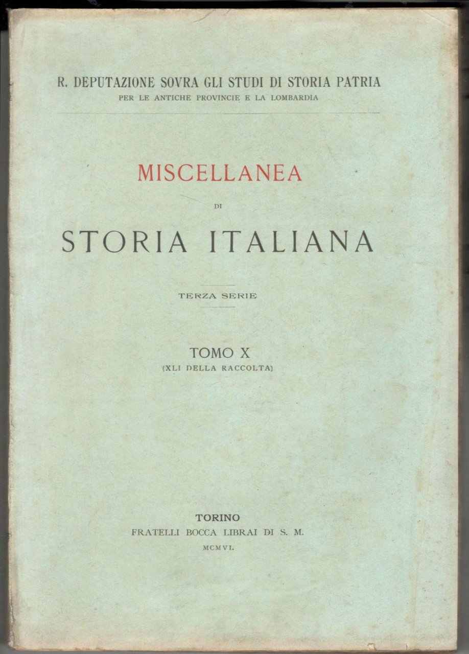 Miscellanea di storia italiana. Terza serie. Tomo X (XLI della raccolta)