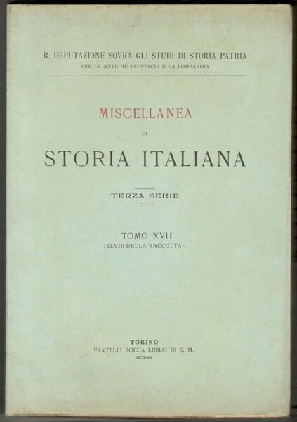 Miscellanea di storia italiana. Terza serie. Tomo XVII (XLVIII della raccolta)