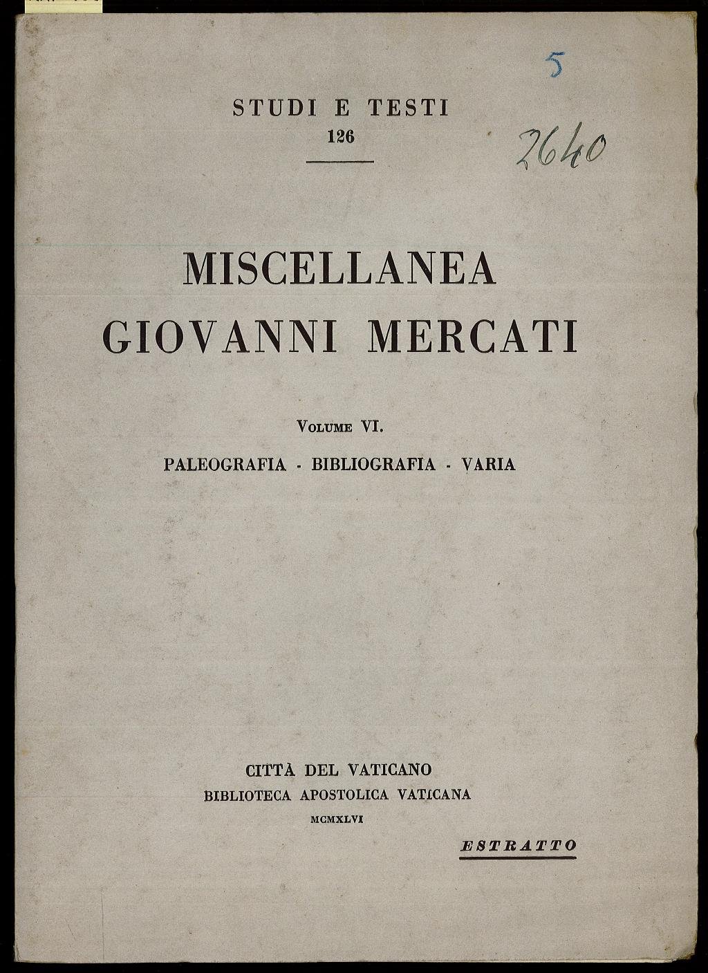 Miscellanea Giovanni Mercati Volume VI. Paleografia - Bibliografia - Varia