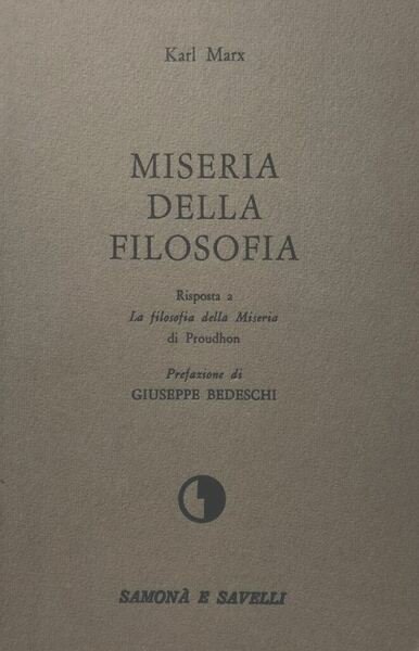 Miseria della filosofia. Risposta a La filosofia della miseria di Proudhon. Pref. di G. Bedeschi