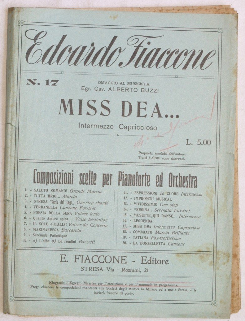 In 8. cm 25x19. pp 20. partitura completa per orchestra senza data ma degli anni '20 di una canzone.<BR>Caratteristica copertina illustrata d'epoca. ex libris in copertina ed in qualche pagina. In buone condizioni; dorso usurato. a complete score for orchestra of 1930's.<BR>Carachteristic decorated cover of that period. ex libris in the cover and in some pages. In good conditions; worn spine.