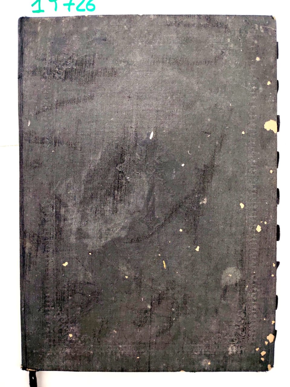 Legatura rigida in tela nera in precarie condizioni con mancanze macchie e aloni ai piatti e al dorso, al frontespizio data di possesso al margine superiore, testo a due colori, numero pagine 56 dimensioni cm 32 x 23