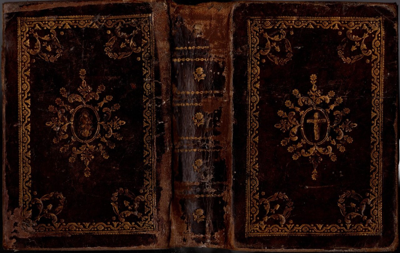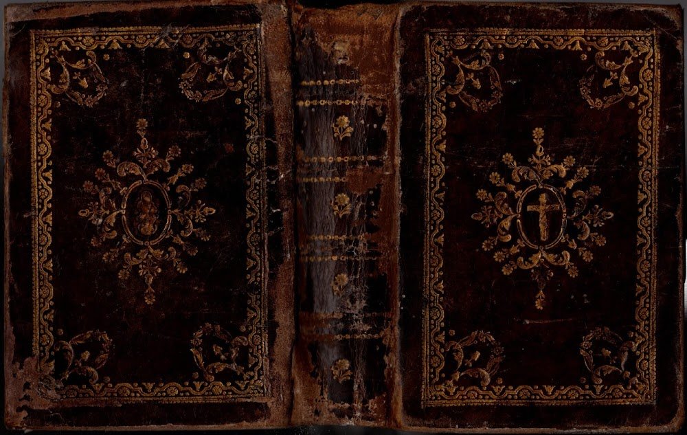Legatura in piena pelle coeva con ricca decorazione ai piatti – Con danni di usura specialmente al dorso