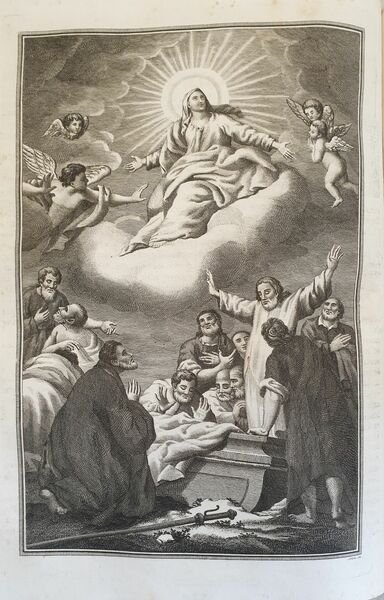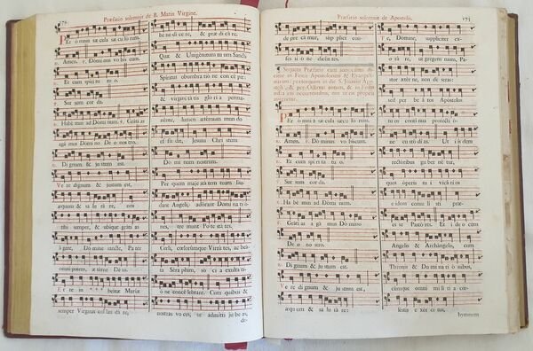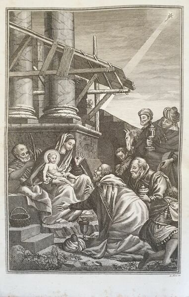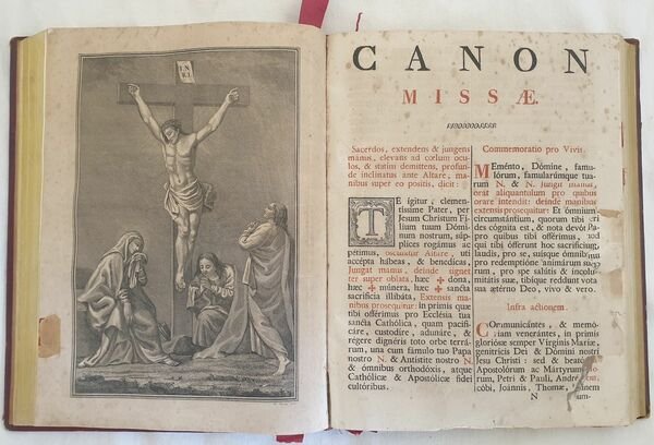 Splendido messale romano del 1840 interamente scritto a caratteri rosso e neri con splendidi capilettera decorati, almeno 1 per pagina (ad esclusione dei canti gregoriani) e riccamente illustrato dal celebre incisore veneto Antonio Nani (1803-1870). All'interno del testo sette finissime incisioni a piena pagina che raffigurano alcune scene religiose (l'annunciazione, Natività (A. Nani), Adorazione dei Re Magi (A. Nani), Crocifissione (A. Nani), Resurrezione (A. Nani), Ascensione (Nani), Assunzione (Nani), Ognissanti). Bella vignetta al frontespizio (vedere foto). All'inizio del messale un introduzione dedicata alla memoria dei tre Papi che si erano occupati di redigerlo (Pio V; Clemente VIII; Urbano VIII) e una sorta di prefazione all'opera con delle tabelle indicanti il calendario liturgico che rimanda alle parti del messale da recitare, Rubrica generale del messale, Riti per celebrare la Messa, Preparazione alla Messa, liturgia e Commune Sanctorum, Missae pro defunctis. Pagine e pagine di canti gregoriani all'interno. Il messale è del 1840 ma sono presenti due aggiunte del 1870 circa: liturgia del'Immacolata Concezione del 7 e 8 dicembre e alla fine Missae propriae seu recentiores Sanctorum pro dioecesi florentina del 1905 (Florentiae, Ex tupographeo Archiepiscopali Raphaelis Ricci). Imponente copertina in piena pelle coeva in armi. Segnalibri di stoffa che aiutavano il sacerdote nella lettura. Era un testo che veniva abitualmente utilizzato quindi presenta dei segni d'uso come cera e rare macchie di sporco. Copertina in piena pelle rossa a quattro nervi con decorazioni in oro in buone condizioni generali con lievi usure marginali. Legatura in buone condizioni generali. Pagine in buone condizioni generali. Strappo a pag. 189 con lieve perdita di testo. In folio. cm 33x26. Pp. XXXII+440+(4)+CXXXVIII+64+(2). Peso Kg. 3,2 Very beautiful missal of 1840 in folio enterely written in black and red charachters with faboulous decorated initial letters, at least 1 for page (excluding Gregorian music) richly illustrated by the famous engraver Antonio Nani (1803-1870). Inside the text there are seven beautiful full page prints representing some religious scenes (announciation, nativity (A. Nani), Adoration of Kings (A. Nani), Crossfision (A. Nani), Resurrection (A. Nani), Ascension (Nani), Assuntion (Nani), All Saints). At the beginning three introductions dedicated to the memories of the three Popes that wrote it (Pio V; Clemente VIII; Urbano VIII) and a sort of introduction to the work with some charts indicating the liturgic calendar which indicates the part of the missal to be read, General Rubrica of missal, Rhytes to celebrate Mass, Preparation to Mass, liturgy and Commune Sanctorum, Missae pro defunctis. There are pages and pages of Gregorian music. The missal is of 18 40 but there are two addings: liturgy of Immacolata Concezione of 7 and 8 dicember of 1870 circa and at the end Missae propriae seu recentiores Sanctorum pro dioecesi florentina of 1905 (Florentiae, Ex tupographeo Archiepiscopali Raphaelis Ricci). It was a text that was normally used, so we find some signs of usage signs, rare wax signs and rare dirt's signs. Fabric bookmarks to get easier the reading to the priest. Full leather red cover with four nerfs and golden decorations in good conditions lightly worn in the extremities. Binding in good general conditions. Inside pages are in good conditions. Tear in pag. 189 with light loss of text. In folio. cm 33x26. Pp. XXXII+440+(4)+CXXXVIII+64+(2). Peso Kg. 3,2