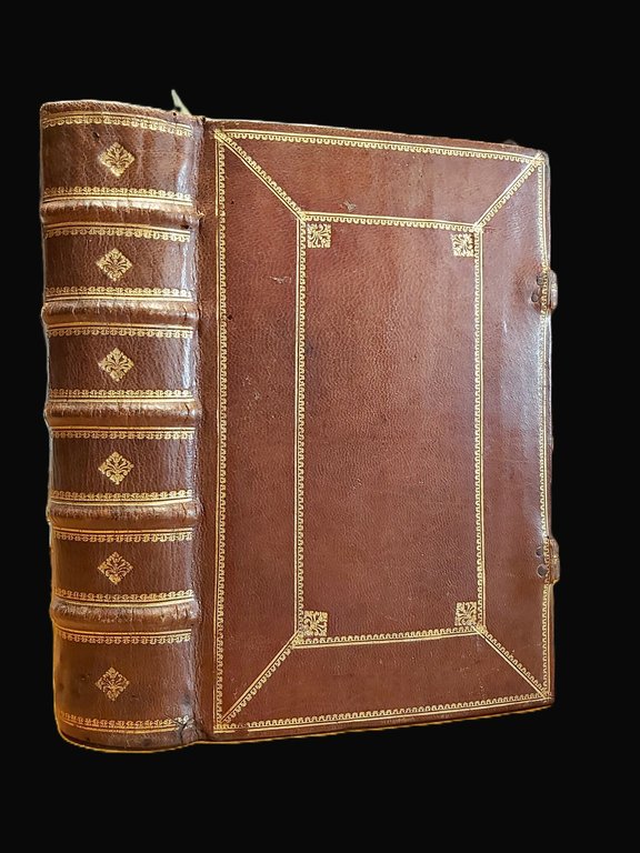 gr. vol. in-4 (cm 25,5), pp. (48), 640, CLII, (6), bella leg. marocchino rosso coevo con riquadri e fregi oro ai piatti e al d. a 5 nervi, fermagli in bronzo a forma di conchiglia, risguardi in carta dec. Front. a due colori con vignetta in rame, testo su due colonne a inchiostro nero e rosso, iniziali xilogr. Con bella tav. in rame a pag.23 raffigurante la natività, Con parti musicali di canto gregoriano. Al fine su 2 pagine ripiegate il testo della Messa propria del rito fiorentino. Perfetto stato di conservazione. [792]
