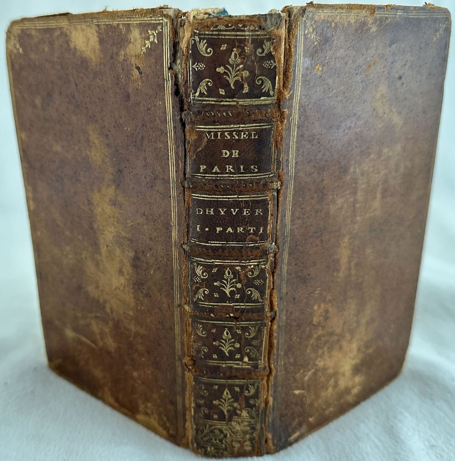 Edizione del 1764 di questo Messale ad uso della città di Parigi con la prima, la terza la sesta e le processioni a cura dell'Arcivescovo Christophe de Beaumont du Repaire (1703-1781). Siamo in possesso della parte invernale, prima parte. Presente parte liturgica per la Messa di azioni di Grazia, Natale, per i malati, Messe quotidiane dei Morti, Orazioni diverse, Salmi di penitenza, Litanie dei Santi ec. Testo a doppia colonna latino e francese. In buone condizioni. Copertina in piena pelle con titolo e decorazioni in oro al dorso in discrete condizioni generali con lievi usure ai margini e dorso. Legatura in buone condizioni. All'interno le pagine si presentano in buone condizioni con rare fioriture. In 16. cm 17,5x10,5. Pp. (6)+376+CCLXXXVII+(1). Edition of 1764 of this Missal for the usage of the city of Paris with first, third and sixth and processions by Archibyshop Christophe de beaumont du Repaire (1703-1781). We onyl have winter part first part. There is a liturgical part for Mass of Grace, Christmas, Illed people, Daily masses of dead people, Different orations, Psalms of penitence, Litanies of Saints ec. Text in fouble columns in french and latin language. In good conditions. Full leather coeval coverwith gilted title and decorations in the spine in fair conditions lightly worn in the extremities. Binding in good conditions. Pages in good conditions with occasional foxing. In 16. cm 17,5x10,5. Pp. (6)+376+CCLXXXVII+(1).