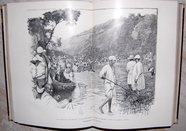 In 4°; (8), 560 pp., 4 tavv. f.t. numerate, una tavola doppia e una c. geograf. ripiegata in coda. Bella legatura coeva in piena pelle rossa con titolo, filetti e nome dell'antico proprietario impressi al dorso. Buono-ottimo stato di conservazione. Tagli leggermente spruzzati in azzurro. Prima edizione di questa importante relazione di esplorazione africana di Michel Charles. L'autore uomo d'affari e militare coloniale francese, il 28 febbraio 1897, si recò a Gibuti, come secondo della missione comandata dal marchese de Bonchamps, il cui obiettivo era quello di unirsi alla missione Marchand a Fascioda. La missione arrivò a 150 km da Fascioda, ma dovette tornare indietro senza raggiungere il suo obiettivo. Il 3 Luglio 1898, Charles Michel rientrò in Francia e pubblicò la relazione della celebre esplorazione nella quale raccolse non solo le sue impressioni di viaggio ma anche interessantissime nozioni sui costumi, la flora e la fauna dei territori attraversati. Le tavole fuori testo illustrano campioni entomologici. Prima edizione in buone-ottime condizioni di conservazione. Very good copy.