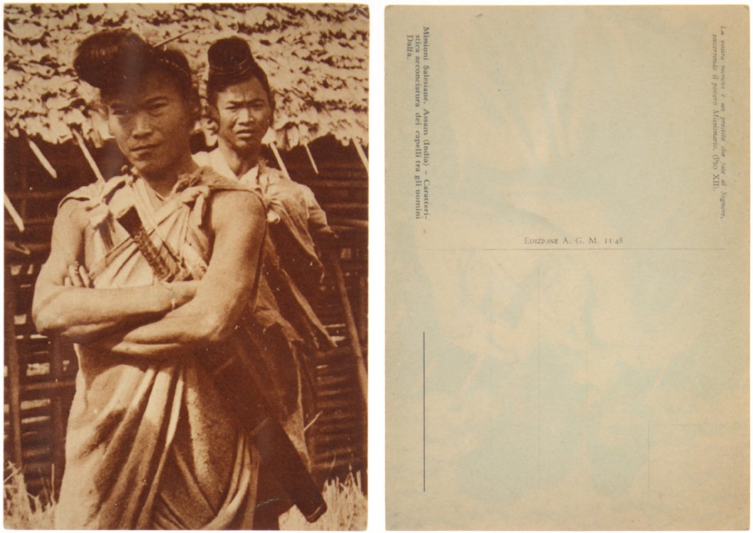 MISSIONI SALESIANE. Assam, India: caratteristica acconciatura dei capelli tra gli uomini Dalfa (Cartolina).