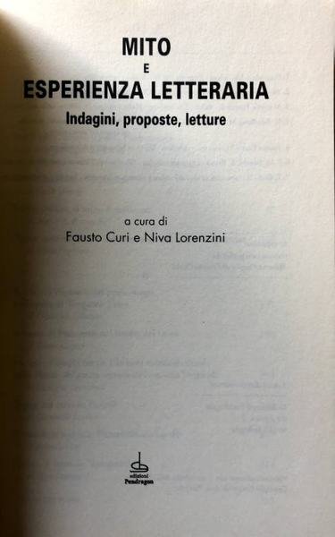 MITO E ESPERIENZA LETTERARIA. INDAGINI, PROPOSTE, LETTURE.
